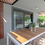 Гости могут отдохнуть на террасе с видом на бассейн.